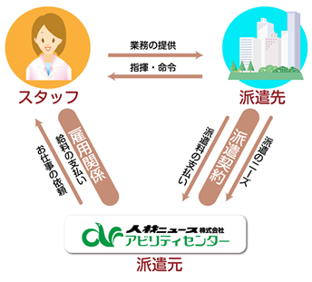派遣スタッフとして就業する場合は、アビリティセンター(派遣元)と雇用契約を結びます。